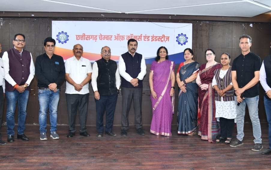 रायपुर. छत्तीसगढ़ चेम्बर ऑफ कॉमर्स एंड इंडस्ट्रीज के प्रदेश अध्यक्ष अमर पारवानी, महामंत्री अजय भसीन, कोषाध्यक्ष उत्तमचंद...