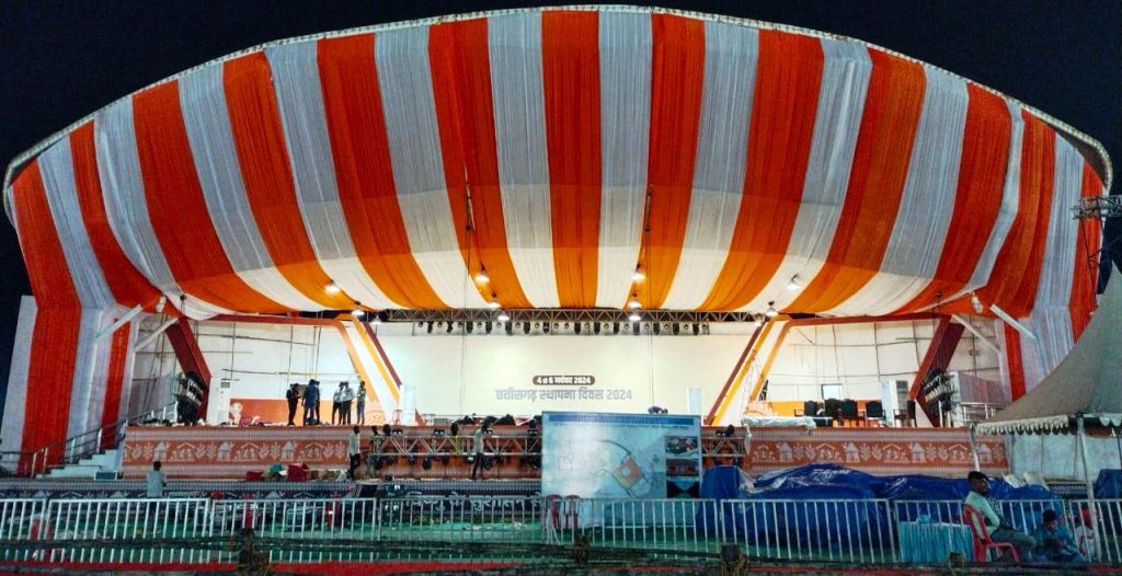 रायपुर. छत्तीसगढ़ राज्य स्थापना दिवस राज्योत्सव 2024 के आयोजन को लेकर तैयारियां जोर-शोर से जारी है। तीन दिवसीय राज्योत्सव का भव्य आयोजन 4 नवम्बर से 6 नवम्बर तक राज्योत्सव स्थल, नया रायपुर अटल नगर में होगा। राज्योत्सव स्थल में मुख्य मंच से लेकर पूरे परिसर की साज-सज्जा का काम तेजी से कराया जा रहा है। शासकीय योजनाओं एवं उपलब्धियों के प्रचार-प्रसार के लिए सभी विभागों के अधिकारी अपने-अपने विभाग का प्रदर्शनी स्टॉल लगाए जाने की तैयारी में जुटे हैं।