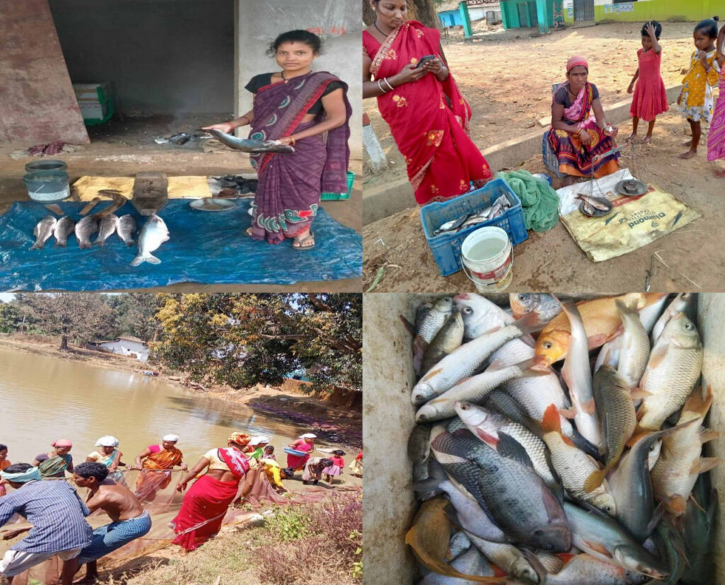 इसी प्रकार फरसगांव ब्लाक के ग्राम पंचायत हिर्री की मां शीतला स्व सहायता समूह की महिलाओं द्वारा जुलाई 2022 से मछली पालन का कार्य किया जा रहा है। इसके लिए समूह को योजनांतर्गत बैंक लिंकेज के माध्यम से 5 लाख रूपए का ऋण निम्न ब्याज दर पर प्राप्त हुआ था। इस राशि का उपयोग करते हुए समूह की महिलाओं के द्वारा मछ्ली पालन व्यवसाय प्रारंभ किया गया। उनके द्वारा मछलियों का स्थानीय बाजारों में विक्रय कर अब तक 65 हजार रुपए तक का शुद्ध लाभ अर्जित किया जा चुका है। फरसगांव ब्लॉक के ही ग्राम पंचायत मोदे के सूरज स्व सहायता समूह की महिलाओं द्वारा दिसंबर 2021 से छोटे स्तर पर मुर्गी पालन का कार्य किया जा रहा है तथा इस व्यवसाय से समूह की महिलाओं को अब तक 65 हजार 300 रुपए का शुद्ध आय प्राप्त हो चुका है। तथा फरसगांव ग्राम ब्लाक के ही ग्राम पंचायत कोर्राबड़गांव के वसुंधरा स्व सहायता समूह की महिलाएं अप्रैल 2022 से किराना दुकान संचालन का कार्य कर रहे हंै जिससे समूह की महिलाओं को अब तक 54 हजार रुपए तक का शुद्ध आय प्राप्त हो चुका है।
