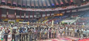कार्यक्रम के समापन पर जब हजारों लोगों ने एक स्वर में “वंदे मातरम्” का गायन किया, तो पूरा स्टेडियम “भारत माता की जय” और “वंदे मातरम्” के जयघोष से गूंज उठा।