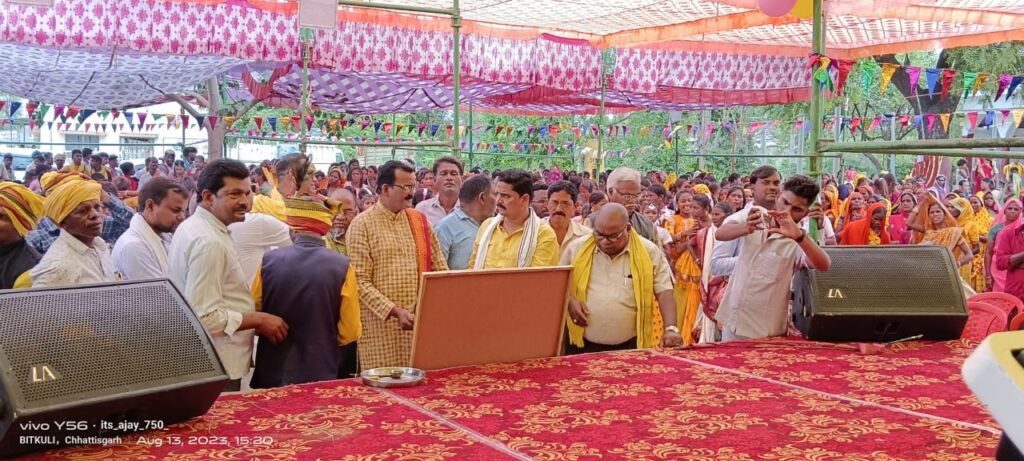 बलौदा बाजार | ग्राम पंचायत बिटकुली में विश्व आदिवासी दिवस मनाया गया इस अवसर पर आदिवासी समाज के द्वारा कलश यात्रा निकाली गई जिसमें आदिवासी समाज के लोग बडी संख्या में शामिल हुए। इस कार्यक्रम के मुख्य अतिथि जिला पंचायत सदस्य कुशल वर्मा थे। बतौर मुख्य अतिथि जिला पंचायत सदस्य कुशल वर्मा ने बताया कि आज विश्व भर का आदिवासी समाज प्रकृति का सच्चा हितैषी है जल जंगल जमीन का रखवाला है उनको अपना अस्तित्व, संस्कृति और सम्मान बचाने के लिए संघर्ष करना पड़ रहा है। इस समय जनजाति को संरक्षण और बढ़ावा देने, इनकी संस्कृति व सम्मान को बचाने के लिए भारत ही नहीं, दुनिया के तमाम हिस्सों में आदिवासी समुदाय के लोग रहते हैं, जिनका रहन-सहन, खानपान, रीति-रिवाज वगैरह आम लोगो से अलग है समाज की मुख्यधारा से कटे होने के कारण ये पिछड़ गए हैं. इस कारण भारत समेत तमाम देशों में इनके उत्थान के लिए, इन्हें बढ़ावा देने और इनके अधिकारों की ओर ध्यान आकर्षित करने के लिए कई तरह के कार्यक्रम चलाए जाते हैं। इस कार्यक्रम की अध्यक्षता श्री भुपेंद्र विक्रम साहू जी जिला पंचायत।वन विभाग कसडोल। बलौदा बाजार। विशिष्ट अतिथि बाबू।राममरावी जी मंडी अध्यक्ष बिटकुली , डॉ एलएस धुव्र आयुर्वेदिक जि.चीकितसालय समुदायिक अधिकारी, बलौदा।बाजार ,श्रीमान मुकेश ठाकुर आदिवासी नेता बलौदा बाजार। ग्राम की सरपंच श्रीमतिसंतोषी संदीप मनहरेजी बिटकुली,सचिव दुलेशकुमारकनौजे जी। ग्रामीण शिवकुमार मरकाम। अध्यक्ष बिटकुली।जनकराम।मरावी। उपाध्यक्ष नेतराम धुव्र। कोषाध्यक्ष रामगोपाल सचिव। राजेन्द्र मंडावी। सचिव।धनेश मरकाम। संचालक। भुमिका। पुजारी। संतोष कुमार नेताम। अमोल सिंह मरकाम। एवं समस्त पंच गण।बिटकुली उपस्थित थे