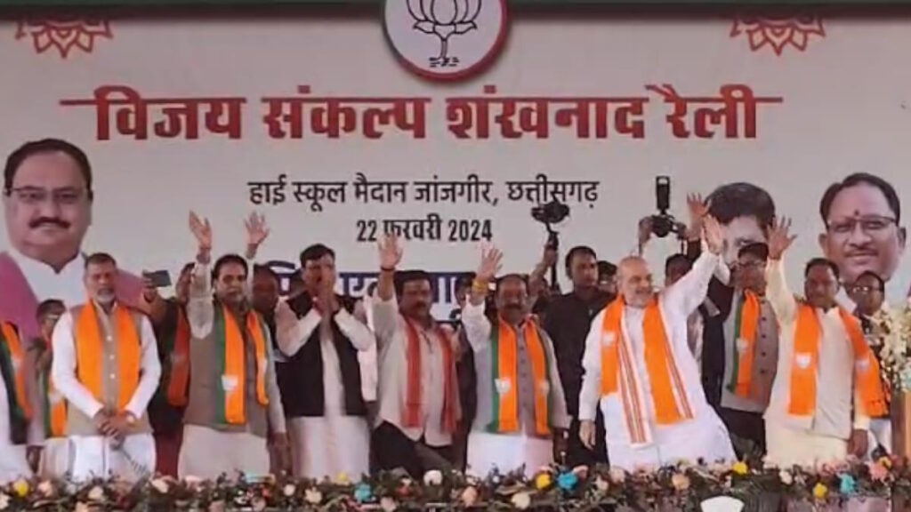 बिलासपुर। केंद्रीय गृह मंत्री अमित शाह ने जांजगीर में लोकसभा चुनाव के लिए भाजपा का प्रचार अभियान शुरू किया. उन्होंने कहा कि आने वाला चुनाव देश का भविष्य तय करने वाला चुनाव है. देश को विकसित और विश्वगुरु बनाने वाला चुनाव है. मोदी जी को फिर से लाओ, हम विश्व की तीसरी ताकत बन जाएंगे. इसे भी पढ़ें : जद (एस)-भाजपा गठबंधन ने कर्नाटक में कांग्रेस की बढ़ाई टेंशन, अरबपति कारोबारी रेड्डी को राज्यसभा के लिए बनाया उम्मीदवार… अमित शाह ने जांजगीर के हाई स्कूल मैदान में आयोजित रैली को संबोधित करते हुए कहा कि लोकसभा चुनाव के लिए विजय संकल्प शंखनाद रैली के लिए आया हूं. भारत को 2014 में 11 में से 10 सीटें दी, 2019 में 11 में से 9 सीटें दी, अभी विधानसभा में छत्तीसगढ़ की जनता के साथ अन्याय करने वाली सरकार को हटाया. कांग्रेस सरकार ने न नक्सलवाद पर लगाम कसी, न भ्रष्टाचार बंद हुआ.शाह ने कहा कि मैं राम के ननिहाल में आया हूं. छत्तीसगढ़ राम का ननिहाल है. मोदी जी ने 500 वर्षों के इंतजार को खत्म किया. अयोध्या में राम मंदिर का निर्माण और रामलला की प्राण प्रतिष्ठा हुई. छत्तीसगढ़ में सरकार बने कुछ दिन ही हुए हैं और विष्णुदेव साय की सरकार ने मोदी की गारंटी को पूरा करने का काम शुरू कर दिया है.