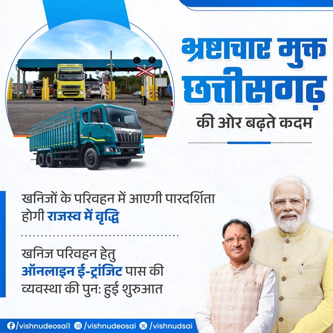 popular छत्तीसगढ़ न कोई गड़बड़ न घोटाला, छत्तीसगढ़ सरकार में ईमानदारी का बोलबाला… : CM साय NKC News May 16, 2024 रायपुर. छत्तीसगढ़ में कोयला सहित अन्य खनिजों के परिवहन के लिए ऑनलाइन ई-ट्रांजिट पास व्यवस्था की फिर से शुरुआत हुई है. सीएम विष्णुदेव साय ने ट्वीटर पर लिखा है कि न कोई गड़बड़ न घोटाला – छत्तीसगढ़ सरकार में ईमानदारी का बोलबाला. Tags: CM साय X पर लिखा – न कोई गड़बड़ न घोटाला ऑनलाइन ई-ट्रांजिट पास खनिजों के परिवहन छत्तीसगढ़ सरकार में ईमानदारी का बोलबाला… Continue Reading Previous: कुएं का पानी पीने से फैली डायरिया, दो गांवों में मिले करीब 80 मरीज, एक की मौतNext: ओडिशा में भाजपा सरकार बनते ही किसानों से 3100 रुपए में खरीदेंगे धान: Related Stories ग्राम पंचायत टेमर में मनरेगा के तहत नहर सफाई कार्य का शुभारंभ सरपंच ने अपने हाथों में फावड़ा चला कर किया छत्तीसगढ़ ग्राम पंचायत टेमर में मनरेगा के तहत नहर सफाई कार्य का शुभारंभ सरपंच ने अपने हाथों में फावड़ा चला कर किया April 18, 2026 माय भारत छत्तीसगढ़ द्वारा बजट क्वेस्ट 2026 का राष्ट्रीय स्तरीय आयोजन किया जाएगा छत्तीसगढ़ माय भारत छत्तीसगढ़ द्वारा बजट क्वेस्ट 2026 का राष्ट्रीय स्तरीय आयोजन किया जाएगा April 10, 2026 MAHAGENCO की गारे पेलमा सेक्टर–2 कोल माइंस से कोयले का प्रथम डिस्पैच शुरू छत्तीसगढ़ से महाराष्ट्र तक पहुंचेगा कोयला, राष्ट्रीय ऊर्जा सुरक्षा को मिला नया आधार छत्तीसगढ़ राष्ट्रीय व्यापार MAHAGENCO की गारे पेलमा सेक्टर–2 कोल माइंस से कोयले का प्रथम डिस्पैच शुरू छत्तीसगढ़ से महाराष्ट्र तक पहुंचेगा कोयला, राष्ट्रीय ऊर्जा सुरक्षा को मिला नया आधार April 9, 2026
