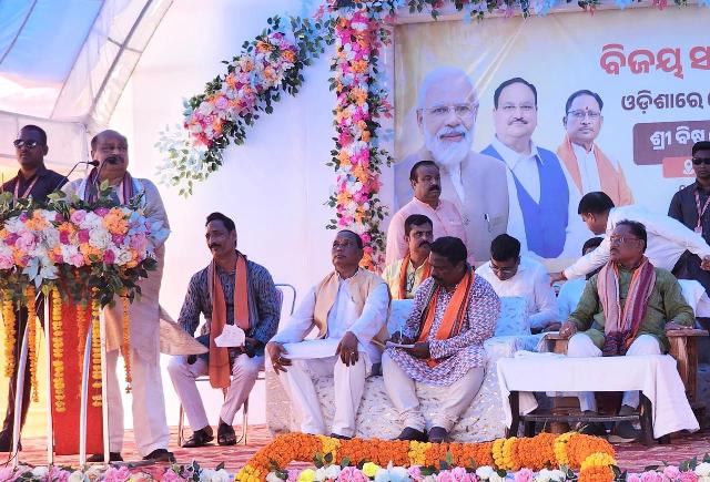 ଏହି ବିରାଟ ବିଜୟ ସଂକଳ୍ପ ସମାବେଶରେ ଉଦବୋଧନ ଦେଇ ଛତିଶଗଡ଼ର ମୁଖ୍ୟମନ୍ତ୍ରୀ ବିଷ୍ଣୁଦେବ ସାୟ, ଦୀର୍ଘ ୨୪ ବର୍ଷର ଶାସନ ମଧ୍ୟରେ ଯେଉଁ ମୁଖ୍ୟମନ୍ତ୍ରୀ ଓଡ଼ିଶାର ଭାଷା, ଖାଦ୍ୟପେୟ, ଚାଲିଚଳନକୁ ଆପଣେଇ ନପାରିଲେ, ସେ ଲୋକଙ୍କର ଆବଶ୍ୟକତାକୁ କିପରି ବୁଝିବେ ବୋଲି ପ୍ରଶ୍ନ କରିଥିଲେ।ରାଜ୍ୟରେ ଡବଲ ଇଞ୍ଜିନ ସରକାର ପ୍ରତିଷ୍ଠା କରି ବିଜେପି ନେତୃତ୍ୱରେ ଓଡ଼ିଶାକୁ ଏହାର ହକ ପ୍ରଦାନ କରିବା ସହିତ, ଏଠାରେ ବିକାଶର ଗତିକୁ ଶୀର୍ଷ ସ୍ତରରେ ପହୁଂଚାଇବାକୁ ଶ୍ରୀ ସାୟ ଆଗ୍ରହ ପ୍ରକାଶ କରିଥିଲେ। ରାଜ୍ୟରେ ବିଜେପି ସରକାର ଶାସନକୁ ଆସିଲେ ମୋଦୀଙ୍କର ଗ୍ୟାରେଣ୍ଟି ଭାବରେ ଚାଷୀମାନଙ୍କୁ ଧାନ କ୍ଵିଣ୍ଟାଲ ପିଛା ୩୧୦୦ ଟଙ୍କା, ମହିଳା ମାନଙ୍କୁ ବାର୍ଷିକ ୫୦ ହଜାର ଟଙ୍କା, ବୟସ୍କ, ଭିନ୍ନକ୍ଷମ ଏବଂ ବୁଣାକାର ମାନଙ୍କୁ ୩୦୦୦ ଟଙ୍କାର ଭତ୍ତା, ଛୋଟମୋଟ ଧନ୍ଦା କରୁଥିବା ଲୋକମାନଙ୍କୁ ୫୦ ହଜାର ଟଙ୍କାର ଋଣ, ରାଜ୍ୟର ୨୫ ଲକ୍ଷ ନାରୀଙ୍କୁ ଲକ୍ଷପତି ଦିଦିର ମାନ୍ୟତା ଏବଂ ୫ ଲକ୍ଷ ବେକାର ଯୁବକଙ୍କୁ ରୋଜଗାର ପ୍ରଦାନ କରାଯିବ ବୋଲି ଶ୍ରୀ ସାୟ ଘୋଷଣା କରିଥିଲେ।କେନ୍ଦ୍ରମନ୍ତ୍ରୀ ଧର୍ମେନ୍ଦ୍ର ପ୍ରଧାନ ଲୋକସଭା ପାଇଁ ପ୍ରାର୍ଥୀ ହେବା ସମ୍ବଲପୁରବାସୀଙ୍କର ସୌଭାଗ୍ୟ ବୋଲି ସୂଚାଇ ଶ୍ରୀ ସାୟ, ଶ୍ରୀ ପ୍ରଧାନଙ୍କୁ ଏବଂ କୁଚିଣ୍ଡାର ବିଧାୟକ ପ୍ରାର୍ଥୀ ରବି ନାରାୟଣ ନାୟକଙ୍କୁ ବହୁ ସଂଖ୍ୟାରେ ଭୋଟ ଦେଇ ଜୟଯୁକ୍ତ କରିବାକୁ ନିବେଦନ କରିଥିଲେ। ସଭାରେ ଭାଷଣ ଦେଇ ଛତିଶଗଡ଼ ରାଜ୍ୟ ବିଜେପିର ଉପ – ସଭାପତି ଶିବ ରତନ ଶର୍ମା, ପୋଖରୀର ପାଣିକୁ ଦୀର୍ଘକାଳ ପର୍ଯ୍ୟନ୍ତ ବଦଳା ନଗଲେ,ଯେପରି ଏହା ଗୋଳିଆ ହୋଇ ବ୍ୟବହାର ପାଇଁ ଅନୁପଯୋଗୀ ହୋଇପଡ଼େ, ଓଡ଼ିଶା ସରକାରଙ୍କର ଆଜି ସେହି ଦଶା ଉପୁଜିଥିବା ଦର୍ଶାଇ ଏଠାରେ ଯଥାଶୀଘ୍ର ଶାସନରେ ପରିବର୍ତ୍ତନ ଆଣିବାକୁ ଅନୁରୋଧ କରିଥିଲେ। ଉପସ୍ଥିତ ମାନ୍ୟଗଣ୍ୟ ବ୍ୟକ୍ତିମାନଙ୍କ ମଧ୍ୟରେ ବିଜେପିର ବରିଷ୍ଠ ନେତ୍ରୀ ରୂପ କୁମାରୀ ଚୌଧୁରୀ, ରଞ୍ଜନ ପଟେଲ, ବୃନ୍ଦାବନ ମାଂଝୀ, ଶୈଳେନ୍ଦ୍ର ନାୟକ, ଯୁବରାଜ କିଶାନ୍, କାହ୍ନୁ ନାଏକ ଓ ସୁଶିଲ କର ପ୍ରମୁଖ ଅନ୍ତର୍ଭୁକ୍ତ ଥିଲେ।