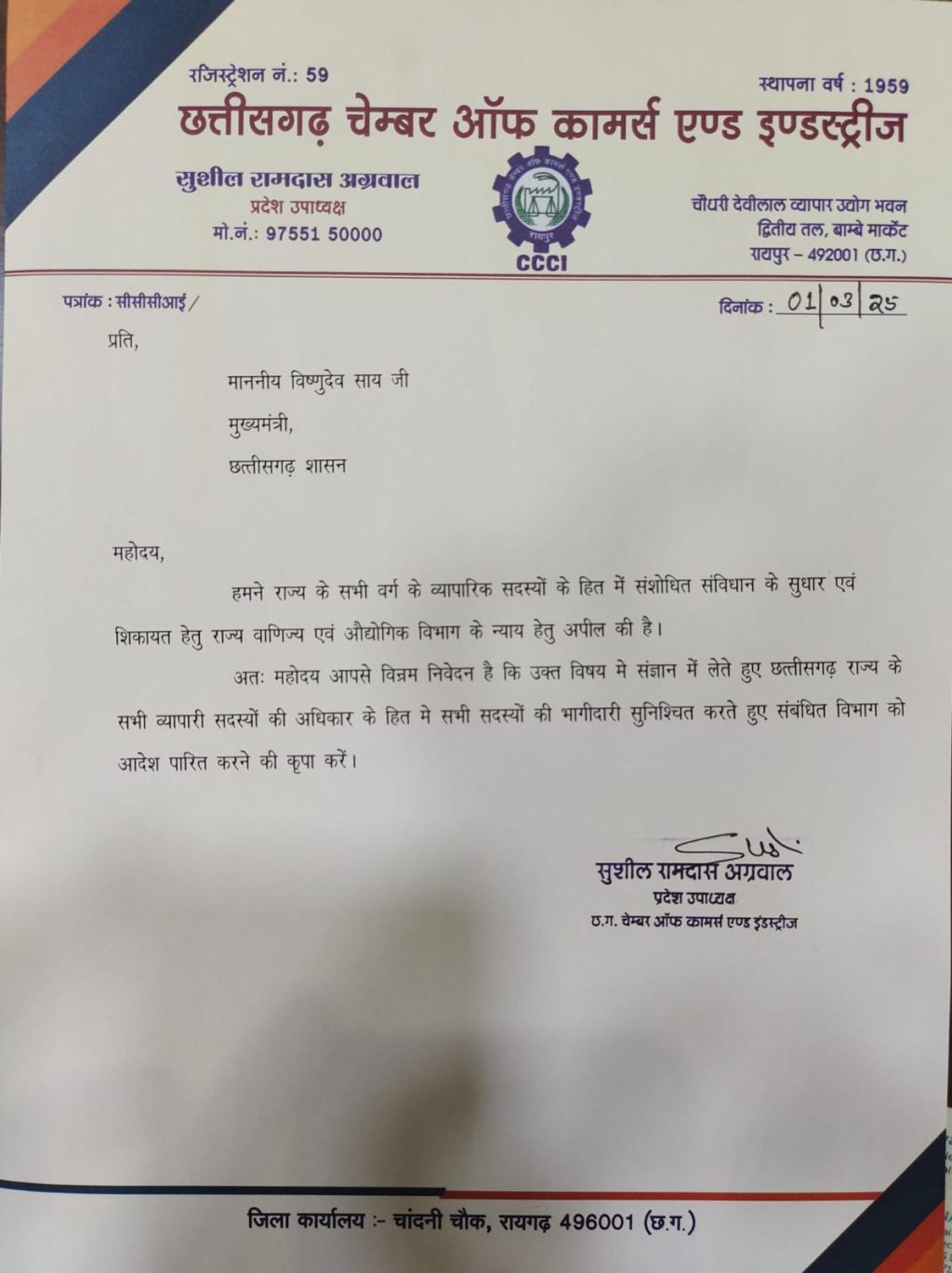 Raipur: छत्तीसगढ़ चेंबर ऑफ कॉमर्स एंड इंडस्ट्रीज चुनाव 2025 के लिए जय व्यापार पैनल ने अपने प्रत्याशियों की...